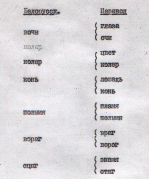 «болезнь», «прильнуть» и т.д., а не «жыта», «здаецца», «калі», «крыніца»,